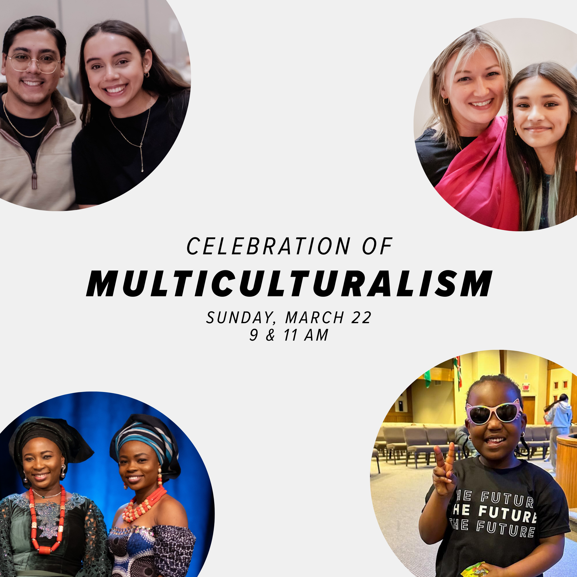 We are looking forward to highlighting the cultural diversity of our church family on Sunday March 22nd (9 AM & 11 AM) at our annual Celebration of Multiculturalism Sunday.