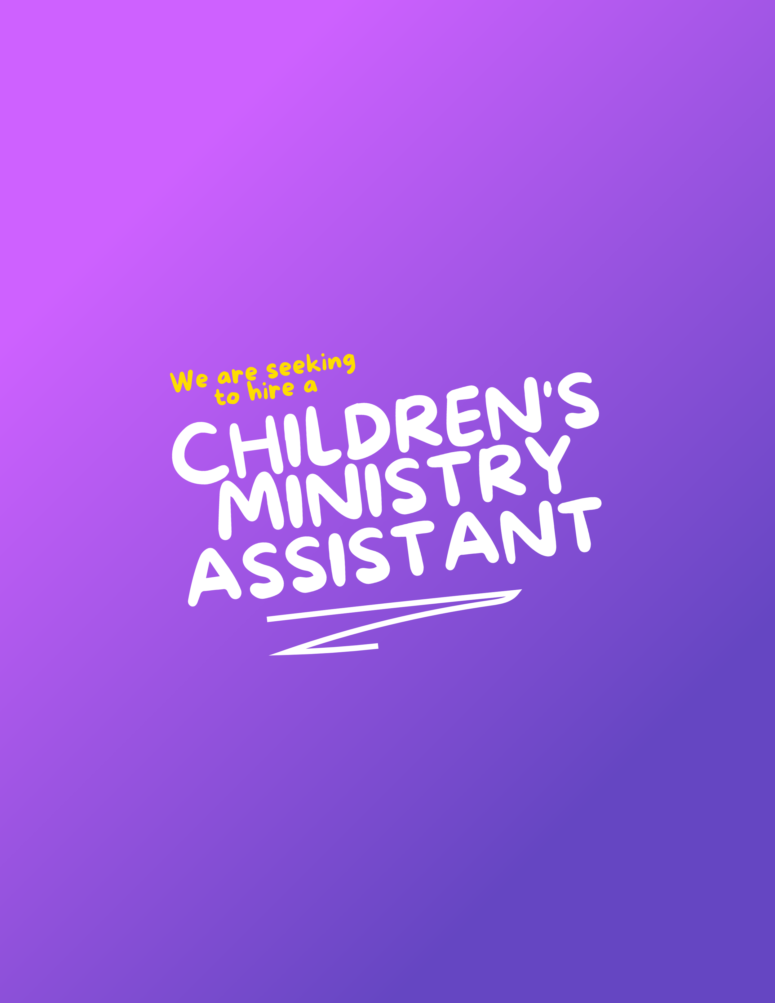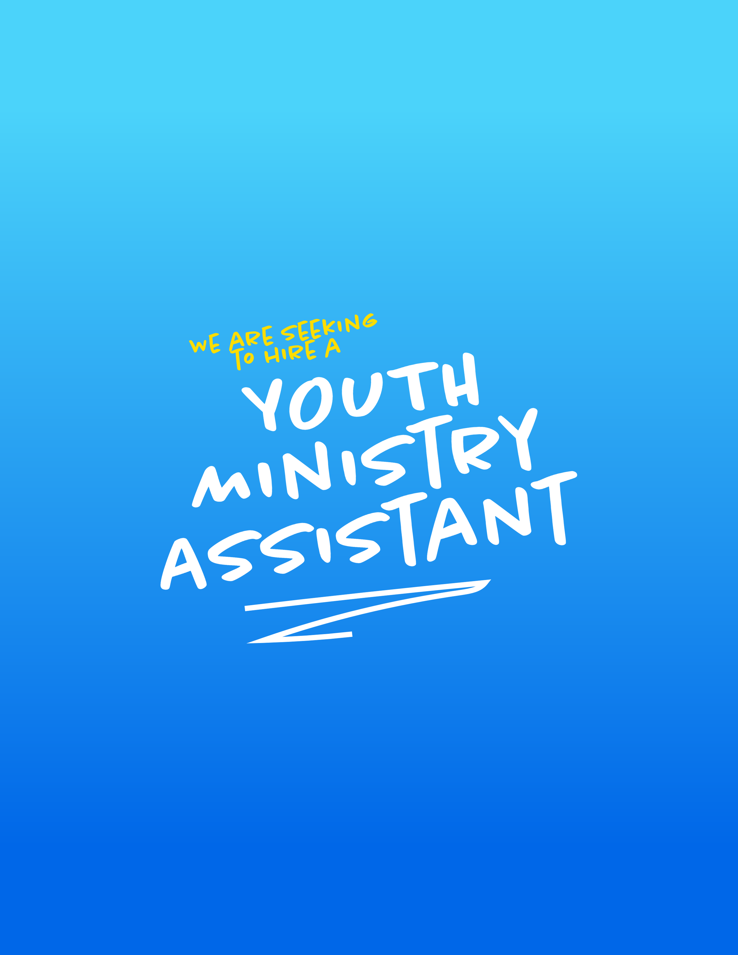 Part-Time Opportunity (20hrs/wk). This is a contract position that reports directly to the Youth Pastor. Deadline to apply is May 13, 2026.