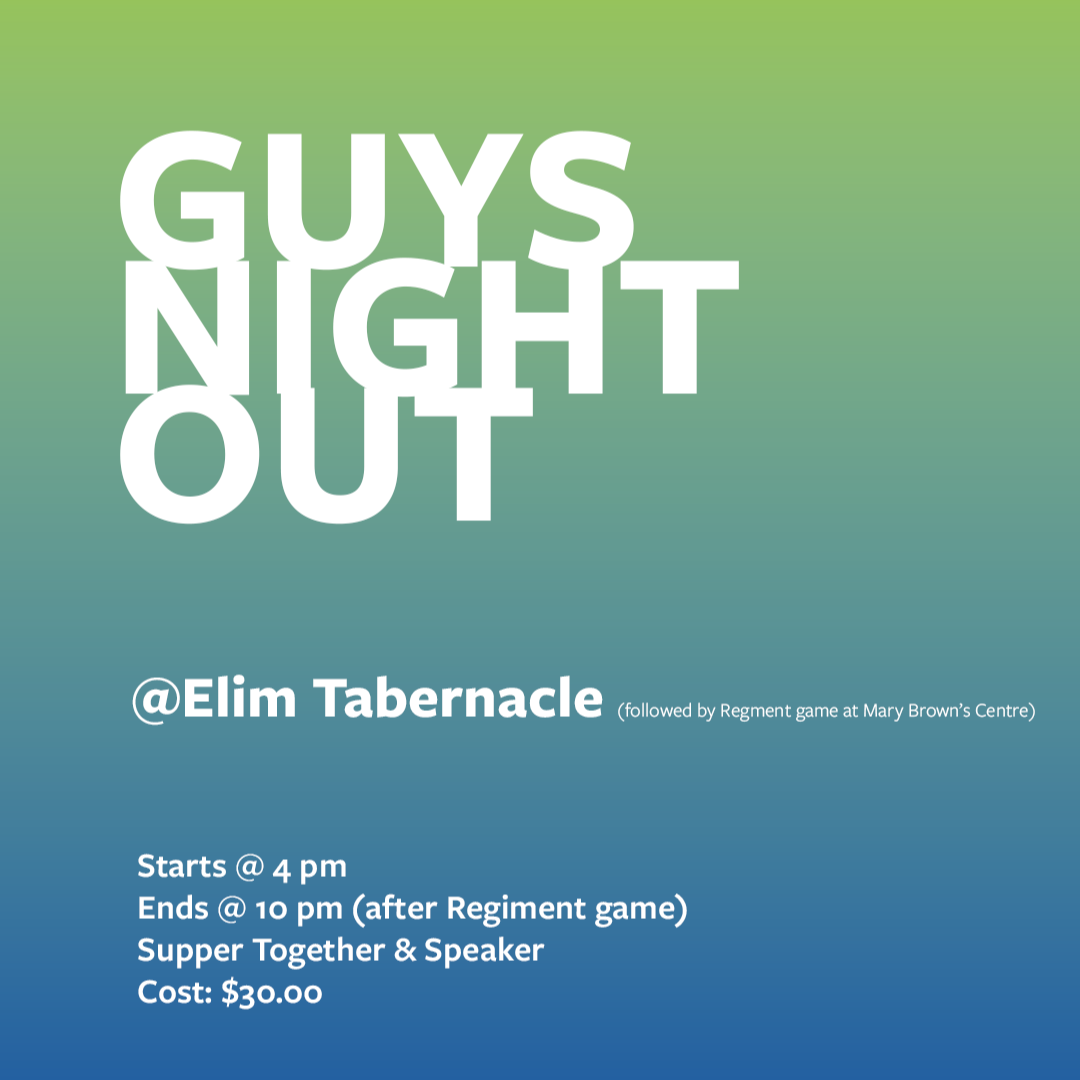 We will start with a meal together, followed by speaking session led by Pastor Shawn Bailey and then we will finish the night off by watching the NL Regiment play hockey.